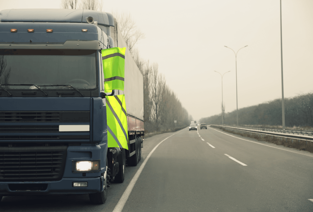 When a semi-truck driver pulls over to the side of a busy road to stop (for repairs or mandatory rest stops), how can the driver increase the vehicle’s visibility without leaving the vehicle?