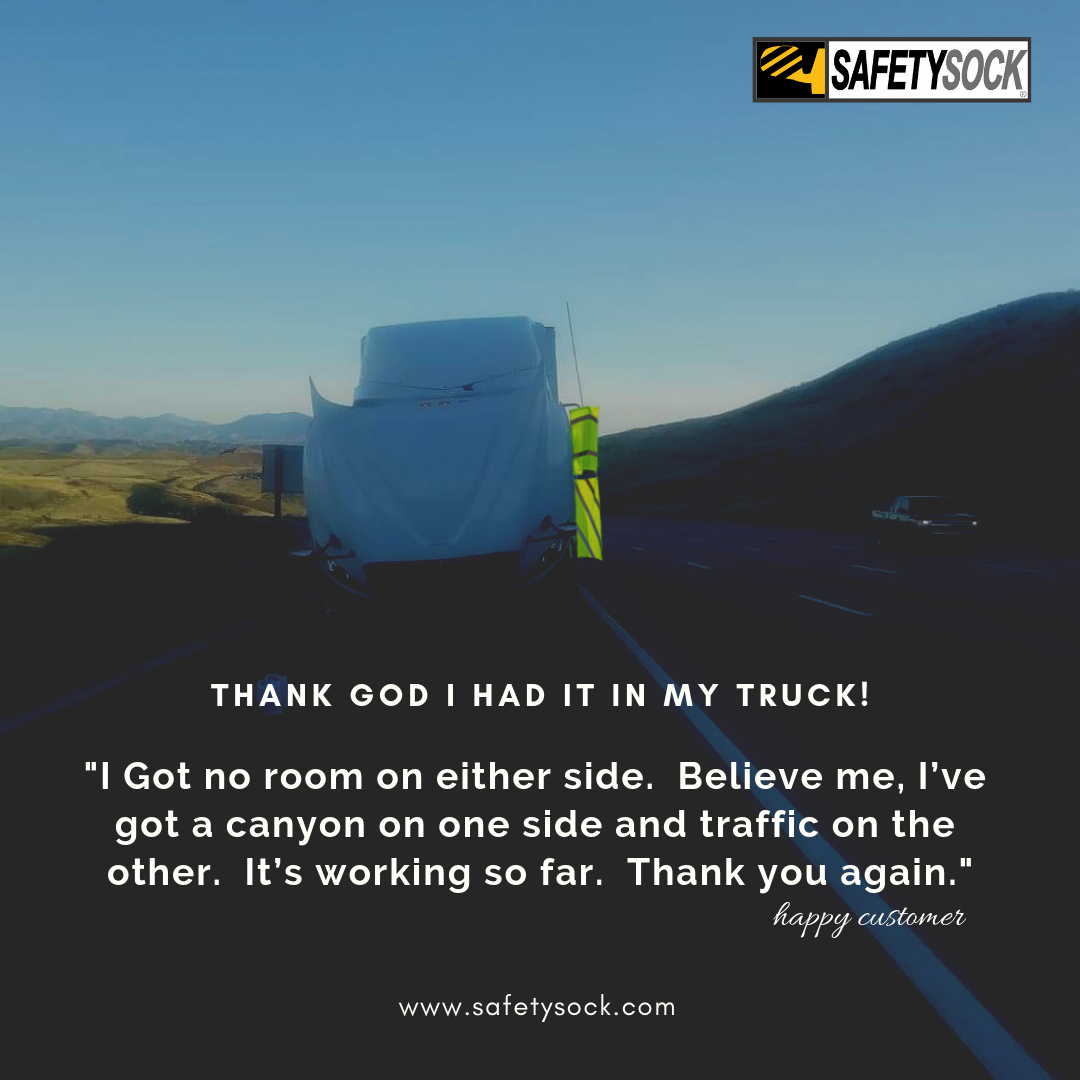 The Federal Motor Carrier Safety Administration (FMCSA) has reviewed the SafetySock® according to its regulations and has confirmed that the SafetySock® can be used as a piece of vehicle safety equipment by commercial vehicles. The SafetySock® can be integrated into existing safety programs and added to existing safety protocols.